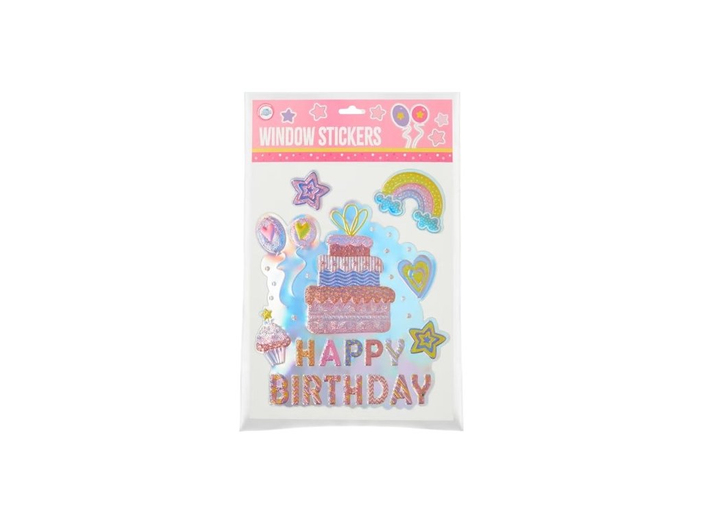 Prekvapte oslávenca alebo oslávenkyňu touto slávnostnou nálepkou na okno. Ľahko sa dá opäť odstrániť.