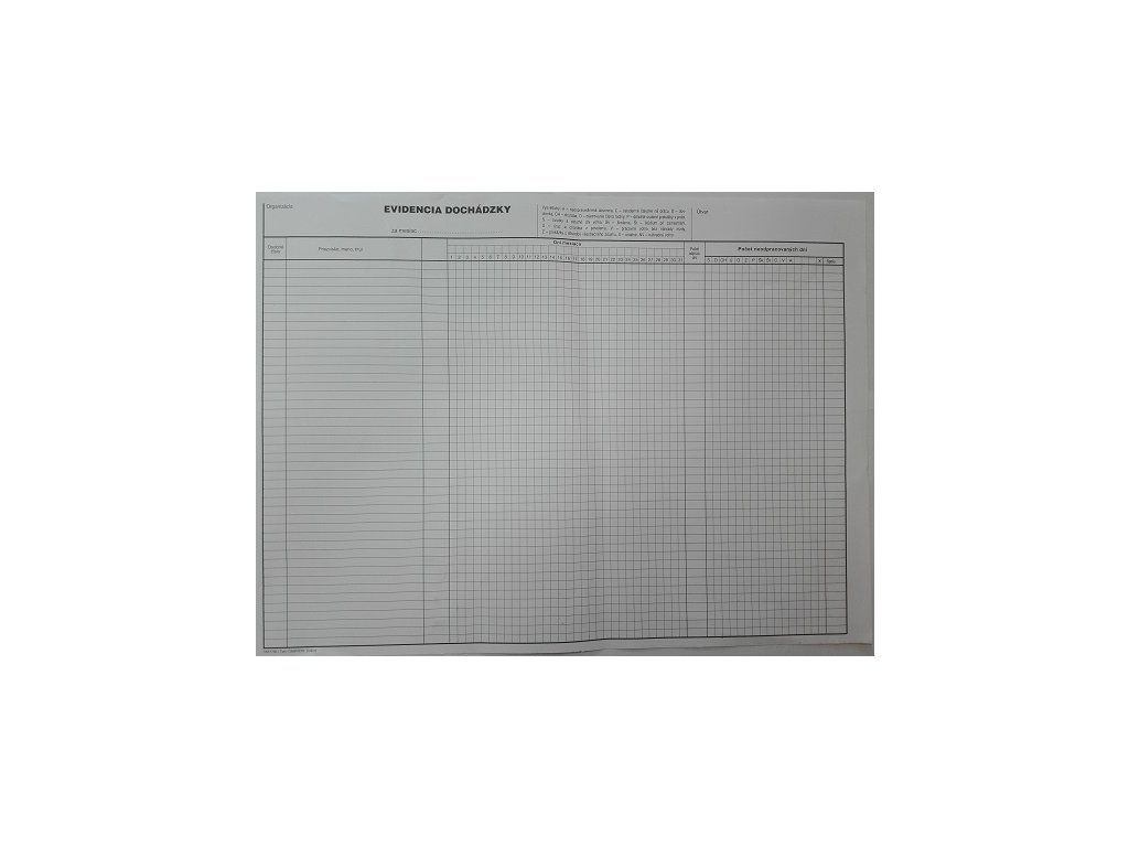 Tlačivo Evidencia dochádzky-2/3