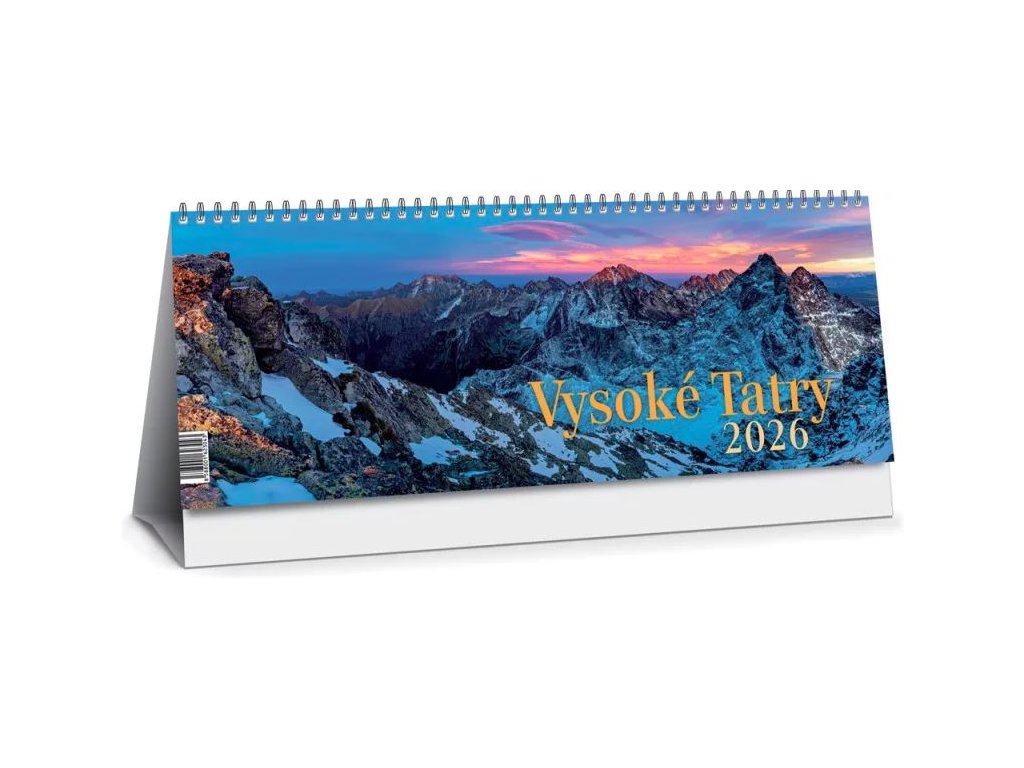 Tatranské štíty, príroda a ľudia, zachytené v stolovom týždňovom kalendári s riadkovým delením, daňovými pripomienkami, fázami Mesiaca, východmi a západmi Slnka, štátnymi sviatkami všetkých krajín EÚ, školskými prázdninami, slovenskými a českými menami (plus netradičné mená).Formát: 300 × 120 mm. Vario špirála, natieraný lesklý papier, 64 strán. Cena za 1 ks výrobku.
